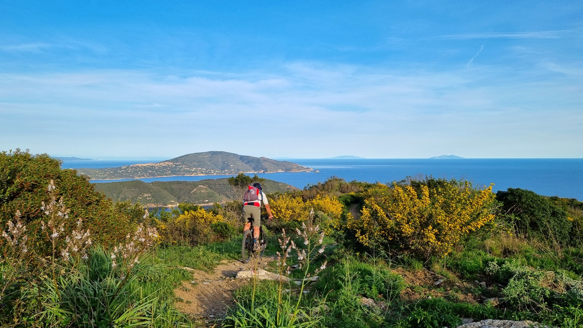 Sbarco all’Isola d’Elba, intorno alle 12,00 consegna bagagli al minibus e partenza in bici per escursione sulle piste e sentieri dell’Elba centrale.
